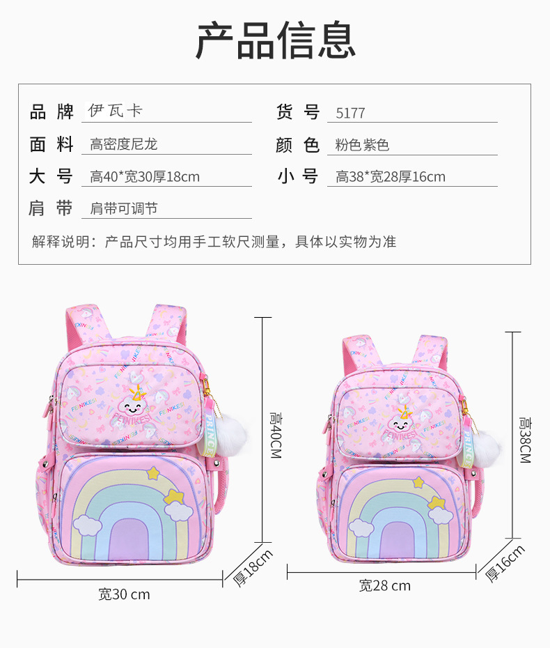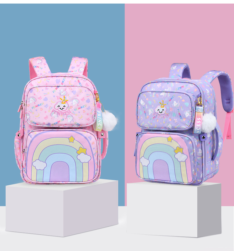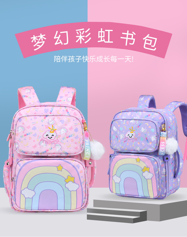 New Rainbow Schoolbag For Primary School Students Multi-Layer Large Capacity Girls Backpack Lightweight Load Protection Spine Children's Schoolbag